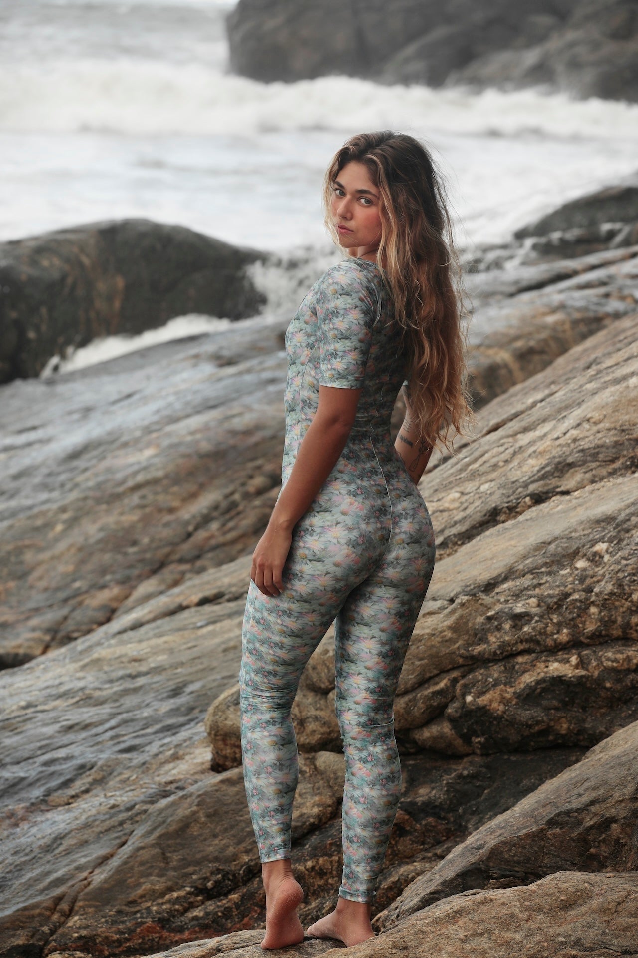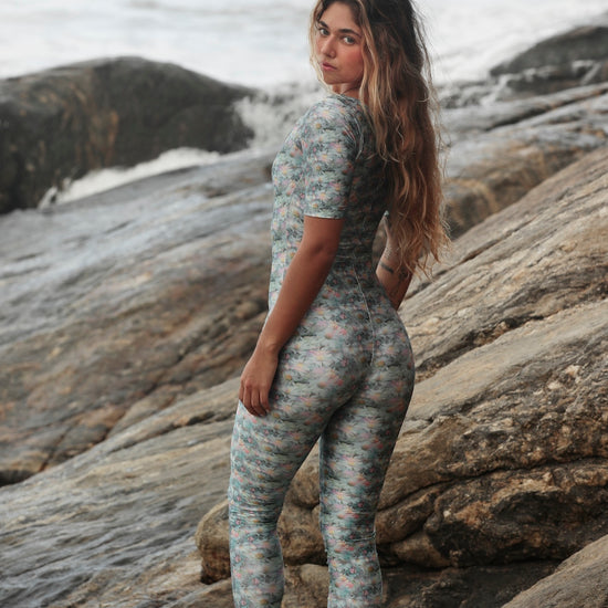 Macacão com decote quadrado e manguinha, forro duplo de tecido, produzido em lycra poliamida + elastano, essa lycra possui mais elasticidade e fio de brilho acetinado, que realça a cor e traz sofisticação à peça. Estampa exclusiva Fitlegs.