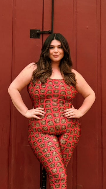 Macacão com decote em U, forro duplo de tecido, produzido em lycra poliamida + elastano, essa lycra possui mais elasticidade e fio de brilho acetinado, que realça a cor e traz sofisticação à peça. Estampa exclusiva Fitlegs.